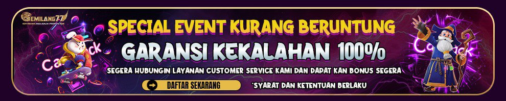 • Garansi Kekalahan Hanya Berlaku Untuk Deposit Via Bank & E-Wallet • Semua member GEMILANG77 yang berstatus KALAH berhak mengikuti promo ini • Promo CASHBACK 100% tidak dapat digabungkan dengan promo lainnya • Minimal deposit untuk mendapatkan promo ini adalah 50.000 • Maksimal CASHBACK 100% yang diberikan ialah : Rp 200.000 • CASHBACK diclaim saat saldo tinggal 500 Rupiah • 1 User ID hanya bisa di klaim 1 minggu sekali pada range waktu sebelum pembagian bonus rollingan & Setelah pembagian bonus rollingan akan bisa di request kan klaim lagi • Promo ini hanya berlaku KHUSUS permainan SLOT GAMES, jika memainkan permainan selain slot maka dana kita anggap hangus dan ID kita banned permanen • Syarat untuk melakukan withdraw cashback 100% adalah 10X TO • Seluruh kredit akan ditarik apabila terindikasi Bonus Hunter, melakukan kecurangan dan kesamaan IP / Data Bank • Bonus dianggap hangus jika rekening tidak valid • Selama mengikuti promo garansi kredit 100% maka bonus rebate mingguan tidak dapat di klaim lagi. • Selama mengikuti Promo ini Dilarang keras bermain TAHANSPIN/HOLDSPIN (JIKA MELANGGAR SALDO AKAN KAMI HANGUSKAN/ID KAMI BANNED) • Cashback di claim melalui WA / Livechat OFFICIAL GEMILANG77 • GEMILANG77 berhak membatalkan bonus apabila kami menemukan indikasi kecurangan/penipuan • Event ini dapat berubah dan berhenti kapanpun tanpa pemberitahuan sebelumnya • Mengikuti event ini berarti memahami segala syarat dan ketentuan yang berlaku • Semua keputusan GEMILANG77 bersifat mutlak dan tidak dapat diganggu gugat WhatsApp Facebook